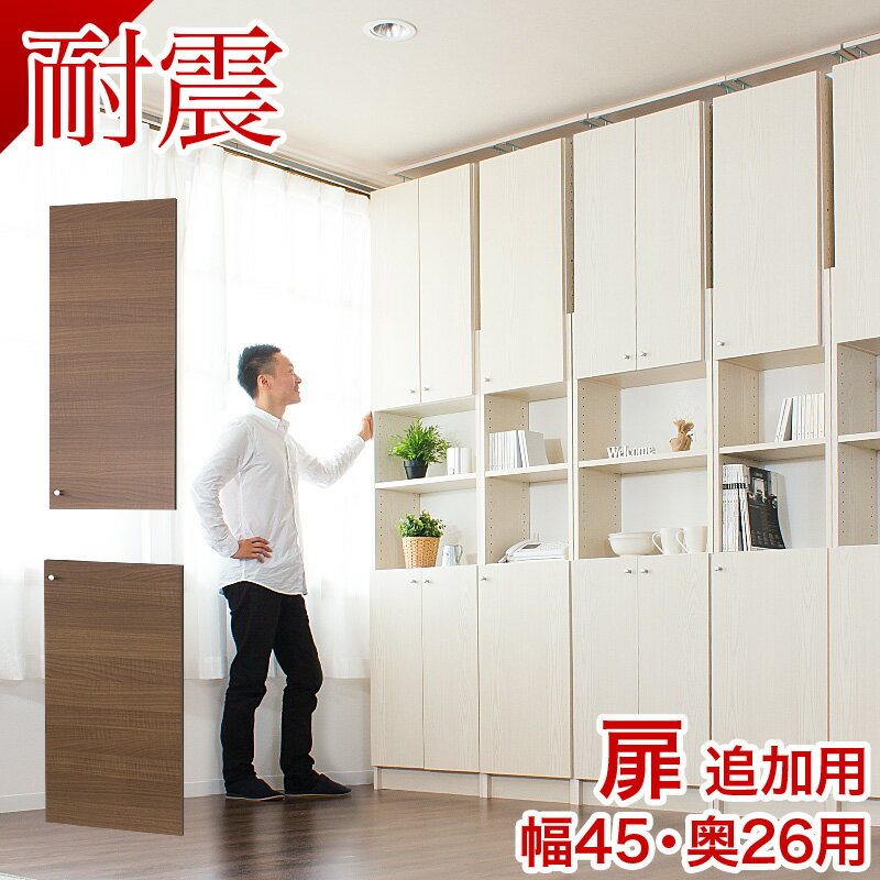 奥深つっぱり耐震書棚用 扉2枚組(上下セット) W450 突っ張り耐震本棚 サンゴ ホワイトオーク ブラウン 突っ張り 本棚 転倒防止 天井突っ張り 壁面収納 耐震本棚 オープンラック 書庫 コミック 耐震 地震対策 防災 薄型/通販/送料無料 【送料込み】 新生活 命を守る行動を