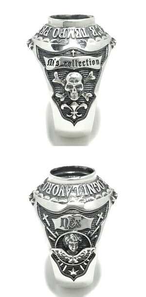 サイドにスカルorエンジェルとブランドロゴを配した、とてもオシャレなシルバーカレッジリングです。