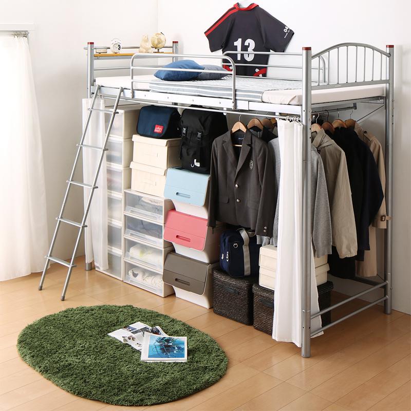 (クーポン)狭い部屋に超人気。服・本・カバンなんでも収納、ロフトベッド(ミドルタイプ)。 宮付き ベッド洋服掛け ハンガー 収納 コンセント付 下 収納 パイプベッド インテリア・収納・ベッド・ロフト・システムベッド 送料無料 (sale)
