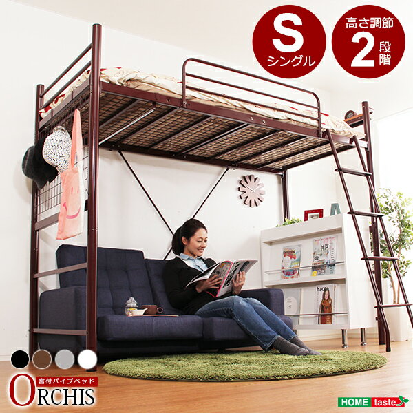 【送料無料】 パイプベッド 高さ調節 ミドル ハイタイプ ロフトベッド シングル ベッド 極太パイプ シングルベッド パイプベット ロフトベット システムベッド ベット オーキッド はしご ベッド下収納 床下活用 金属製 アイアン 子供部屋 子供用 ワンルーム 北欧 ht70-96