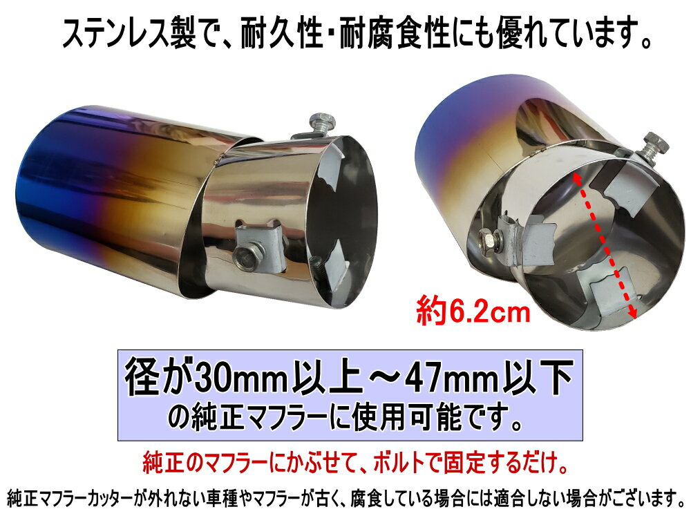 シルバークロームタイプはこちら 【適合】 マフラーの直径が3cm〜4.7cmまでの 大部分の純正マフラーに対応致します。