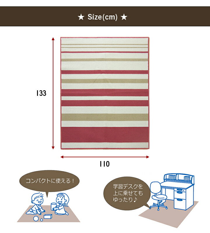 【割引クーポン配布中】【学習机用/110x133cm】デスクカーペット コンパクトサイズ CEGLIA(セグリア) 4色対応 デスクマット ラグ カーペット 子供用ラグ 女の子 男の子 子供部屋 学習椅子用 学習チェア用 床傷防止 防汚 防音 ボーダー ストライプ